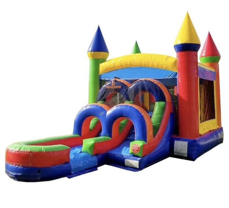 The Royal Rush is a show-stopping (wet/dry) inflatable designed to turn any backyard party or community event into a grand, energetic celebration. Built for lively play and repeated rentals, it combines a spacious bouncing deck, high safety walls, and wide entry steps so kids can climb in and out easily while adults can supervise from a short distance. Bold, regal colors and decorative accents give it a castle-like presence that photographs beautifully and sets a festive tone for birthdays, school functions, fundraisers, and themed parties. Inside, the jump surface is roomy enough for multiple children to bounce and play together, while reinforced stitching and heavy-duty material make it durable through frequent setup, takedown, and transport. Safety features — including soft interior corners, a secure netting barrier, and a clearly marked entrance/exit — help reduce accidental falls while still keeping the experience fast-paced and fun. Quick to inflate and efficient to anchor, this rental fits comfortably on grass or a flat paved area and pairs well with additional party rentals like tables, tents, and concession machines. Ideal for hosts who want an eye-catching centerpiece that delivers non-stop activity, The Royal Rush promises high-energy entertainment, memorable photos, and easy logistics for event planners and families alike.