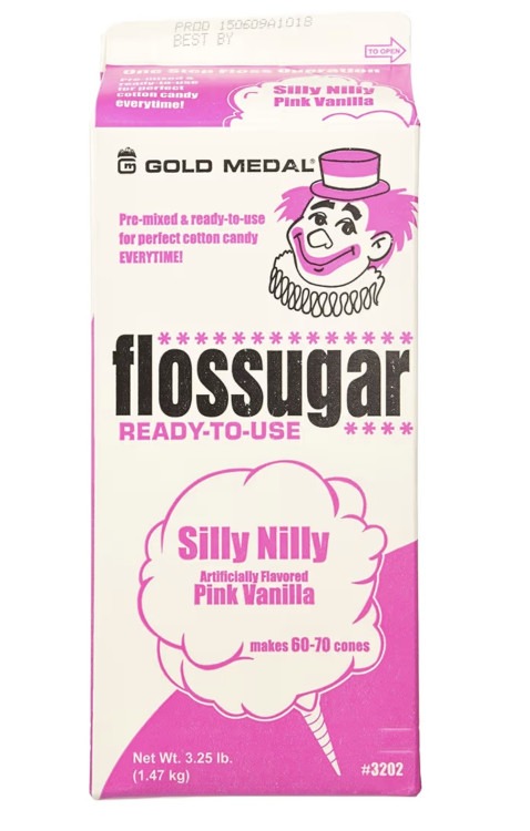 3.25lb - Blue Raspberry sugar floss w/50 conesCotton Candy Machine:3.25lb - Blue Raspberry sugar floss w/50 cones1Dropdown02701173_31531150000Looking for a delicious and easy-to-serve treat to entertain your guests at your upcoming event? Look no further than our Blue Raspberry sugar floss with 60 cones! Our rich and flavorful sugar floss is sure to satisfy your sweet tooth and leave your guests smiling. This package includes enough sugar floss and cones to serve a crowd, making it the perfect addition to any party, fair, or carnival. So what are you waiting for? Order now and let the fun begin! 3.25lb Pink Vanilla Floss Sugar w/ 50 conesCotton Candy Machine:3.25lb Pink Vanilla Floss Sugar w/ 50 cones1Dropdown02701173_31531210000Bring a sweet, carnival-style treat to your event with this 3.25 lb tub of pink vanilla floss sugar plus 50 cones. Perfect for parties, fundraisers, or family gatherings, the pre-measured sugar delivers that classic pink, vanilla cotton candy flavor, while the included cones let you serve up to 50 fluffy servings without hunting for supplies. Easy to use with any standard commercial cotton candy machine, this kit keeps setup and cleanup simple and helps create a colorful, nostalgic centerpiece that guests of all ages will love.